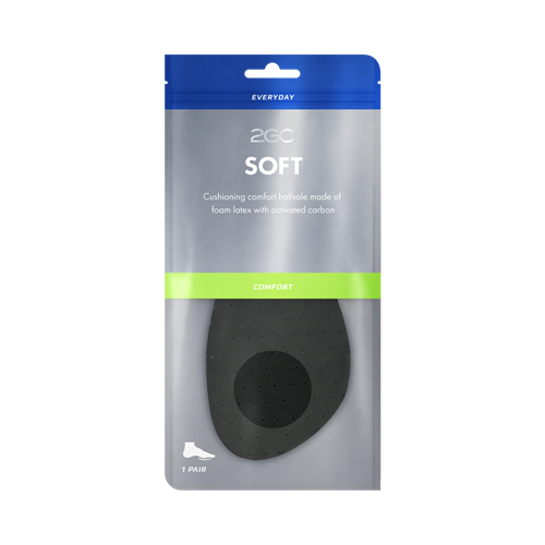 Svart halvsula av skumlatex med ett ovanskikt av mjuk viskosväv. Tunn konstruktion som passar alla typer av skor. Aktivt kol minimerar dålig lukt och ger en fuktabsorberande effekt.