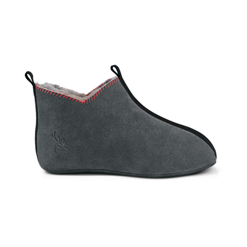 Sportig toffel med stilrena och moderna detaljer. Det yttre lagret av skyddande koskinn är slitstarkt och insidan av härligt mjuk ull ger en behaglig känsla för foten. Svarta band och kontrasterande sömmar som detaljer. Förstärkt yttersula av mönstrad termoplast för optimalt grepp.