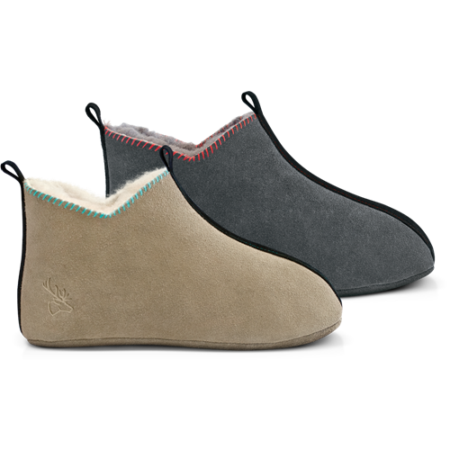 Sportig toffel med stilrena och moderna detaljer. Det yttre lagret av skyddande koskinn är slitstarkt och insidan av härligt mjuk ull ger en behaglig känsla för foten. Svarta band och kontrasterande sömmar som detaljer. Förstärkt yttersula av mönstrad termoplast för optimalt grepp.