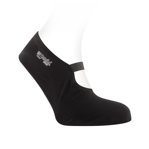 Gymnastiktoffel i 100% polyester. Fordrad med bomullsfrotté. Gummisula. Finns i storlekarna 24 - 45 och färgerna Vit och Svart.