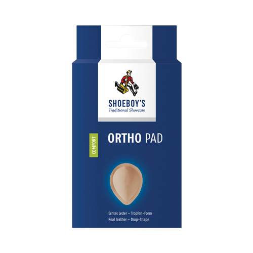 Droppformad pelott med ovansida av äkta läder ger stöd åt förfotsvalvet. Självhäftande.